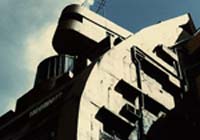 機械室の見上げです。まるでロボットの交通巡査と いったかんじですね。柱を曲線状にまげてるのがよくわかります。 |